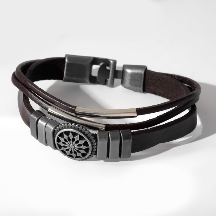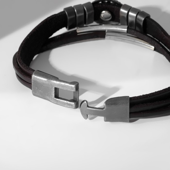 Браслет мужской «Компас», цвет коричневый с чернёным серебром, 20,5 см