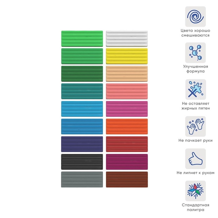- Пластилин изготовлен из безопасных компонентов высокого уровня качества, не пачкает руки, не имеет запаха.