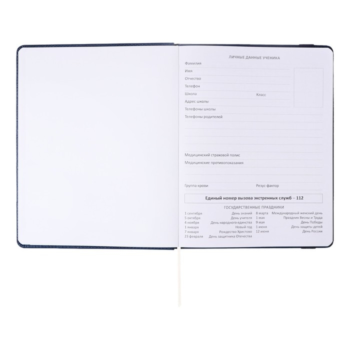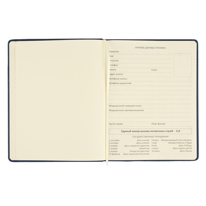 Дневник универсальный для 1-11 классов Dark blue, твёрдая обложка, искусственная кожа, резинка, ляссе, 48 листов