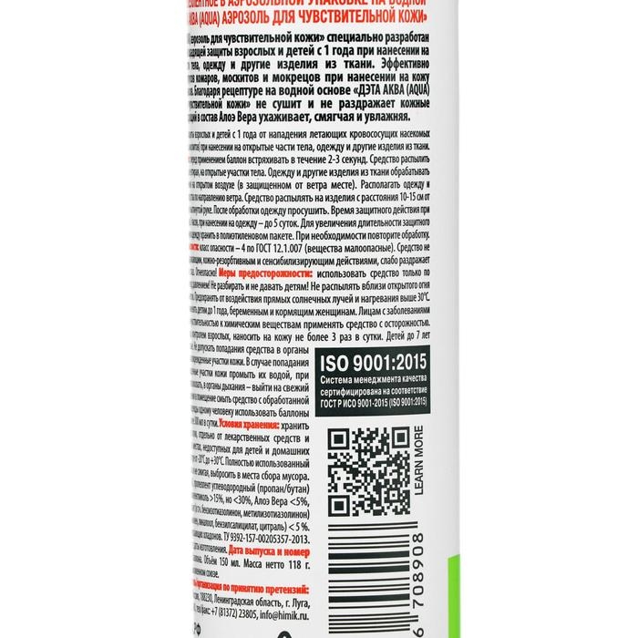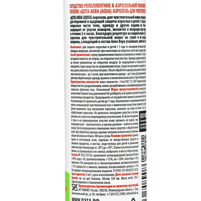 Аэрозоль репеллентный от комаров "ДЭТА АКВА", для чувствительной кожи, 150 мл