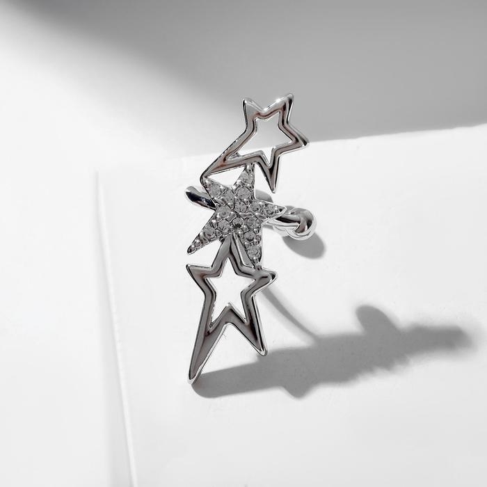 Серьга «Кафф» три звезды, цвет белый в серебре