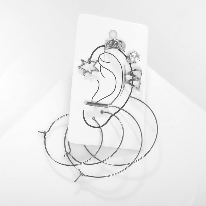 Серьги «Каффы» имидж, цвет серебро, набор