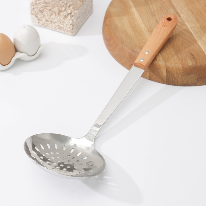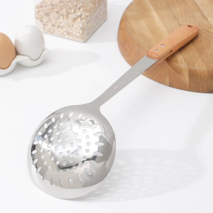 Шумовка из нержавеющей стали Доляна «Стандарт», h=32 см, цвет серебряный
