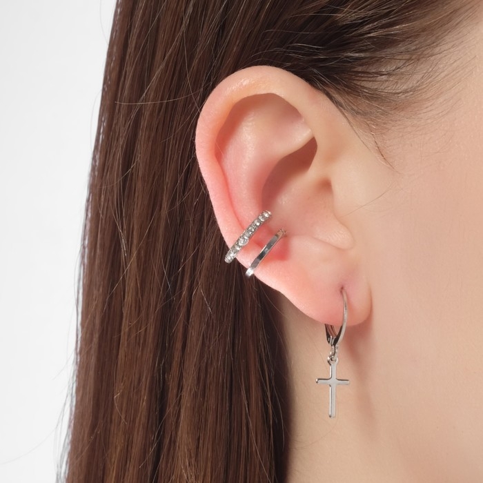 Набор серьги и кафф «Крестики» кольца, цвет белый в серебре
