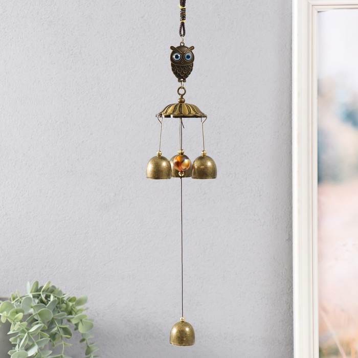 Музыка ветра металл "Совёнок" от сглаза 4 колокольчика 28х5,8х5,8 см