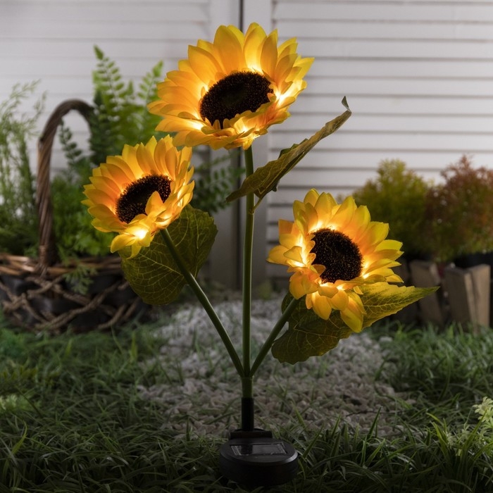 Садовый светильник на солнечной батарее «Подсолнухи», 70 см, 30 LED, свечение тёплое белое