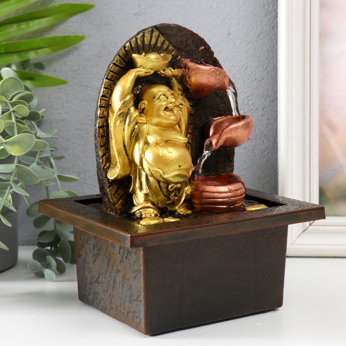 Фонтан настольный от сети "Счастливый хотей со слитком золота" 13х13х20 см