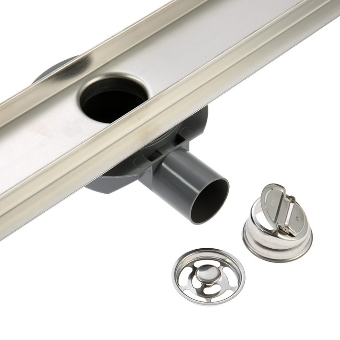 Трап ZEIN engr, c флaнцeм свободного вращ 360°, 7×80 см, d=40/50 мм, нерж сталь, сатин