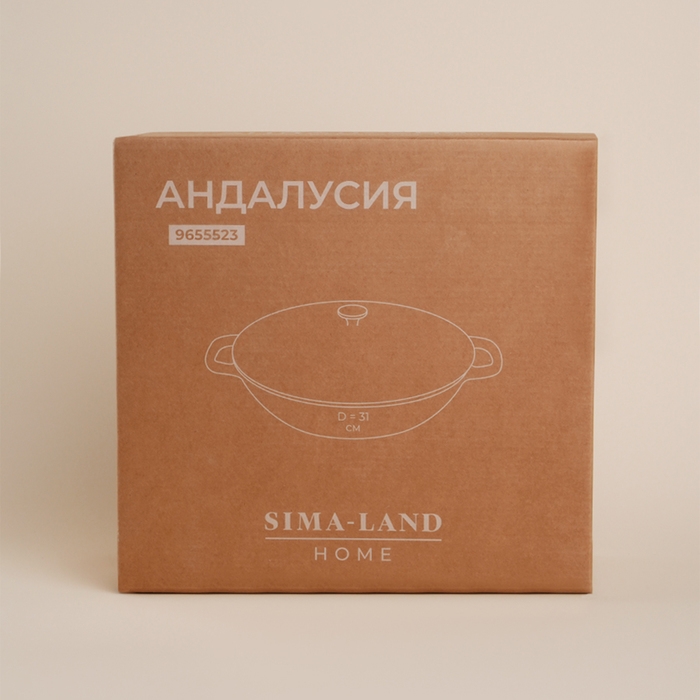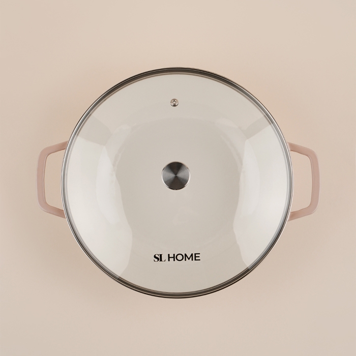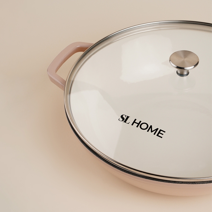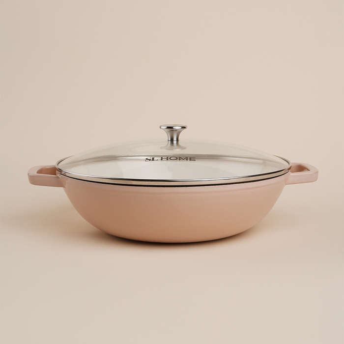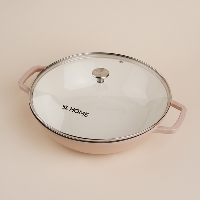 Сковорода-Вок чугунная с эмалированным покрытием SL Home, d=31 см, h=8,5 см, индукция, цвет бежевый