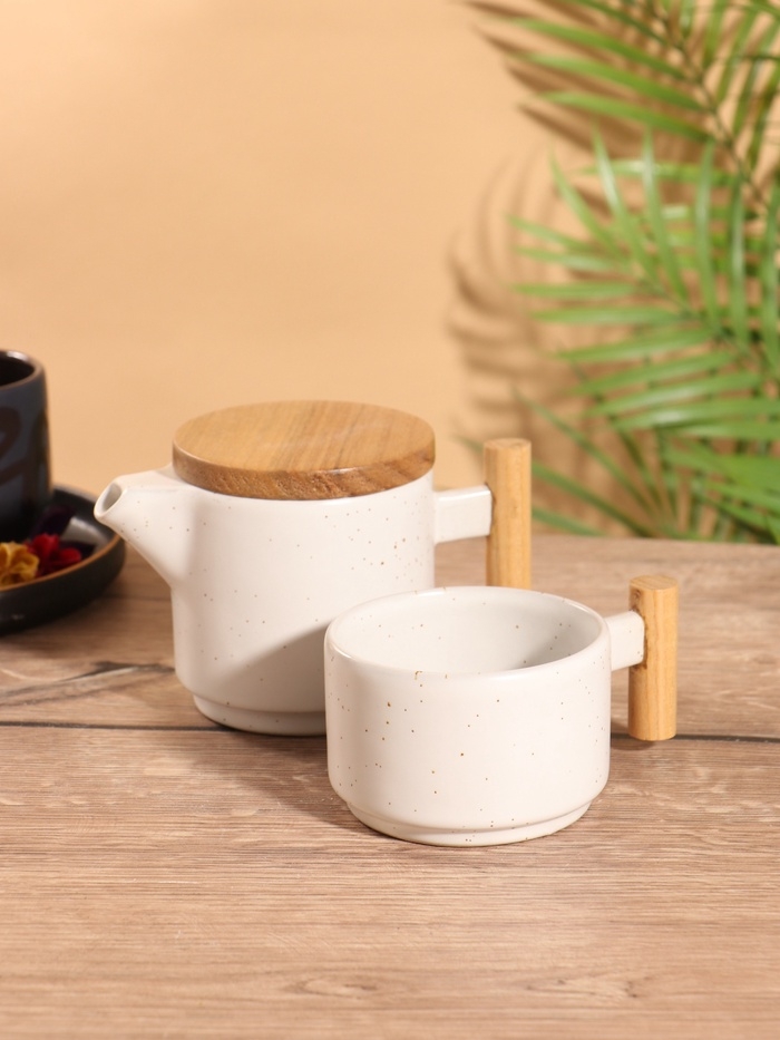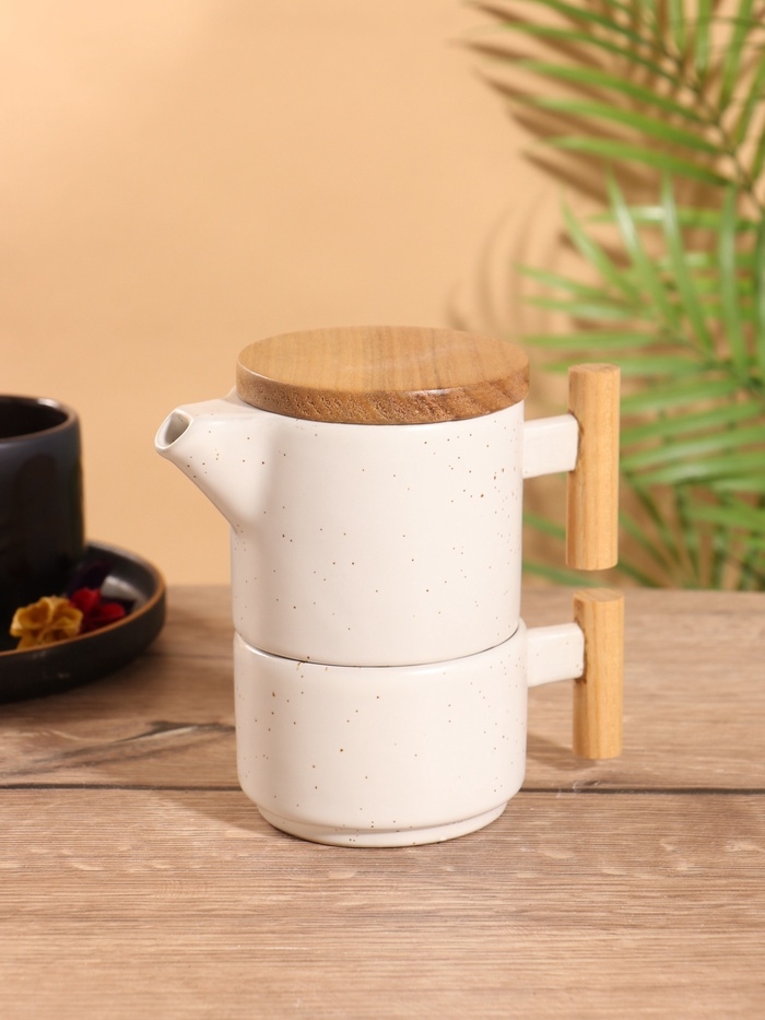 Набор для чаепития «Атика» керамический, белый, чайничек + кружка
