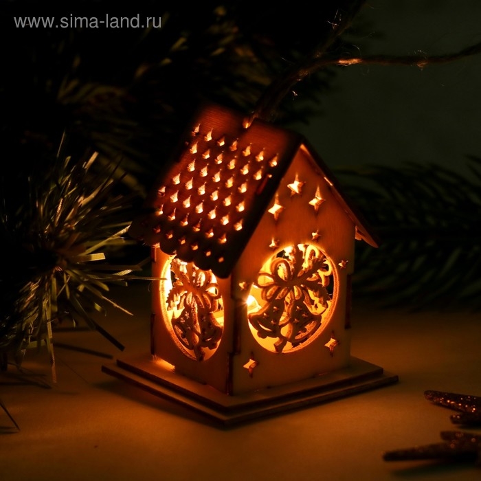 Ёлочная игрушка «Имбирный домик» 6 × 8,5 × 5.5 см, от батареек, свечение тёплое белое