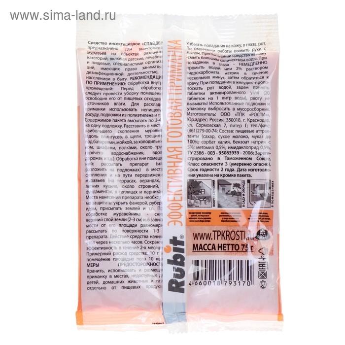 Средство от муравьев "Рубит Спайдер", гранулы, 75 г
