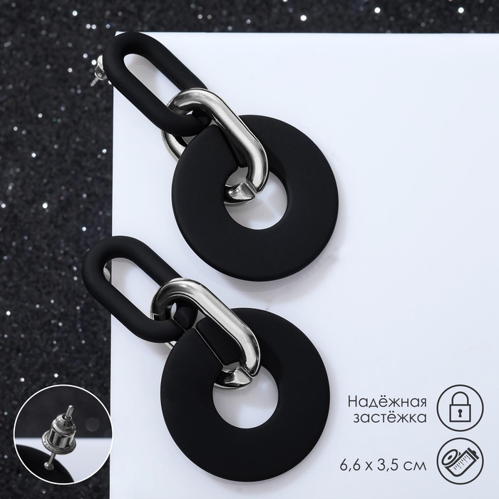 Серьги металл «Цепь» кольца, 3 звена, цвет серебристо-чёрный