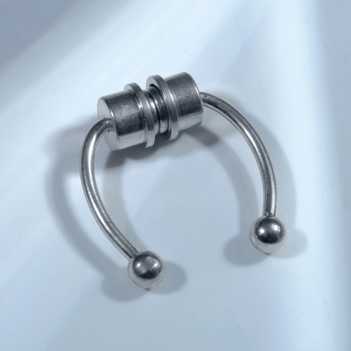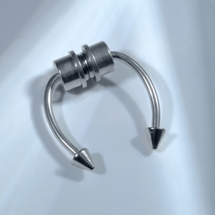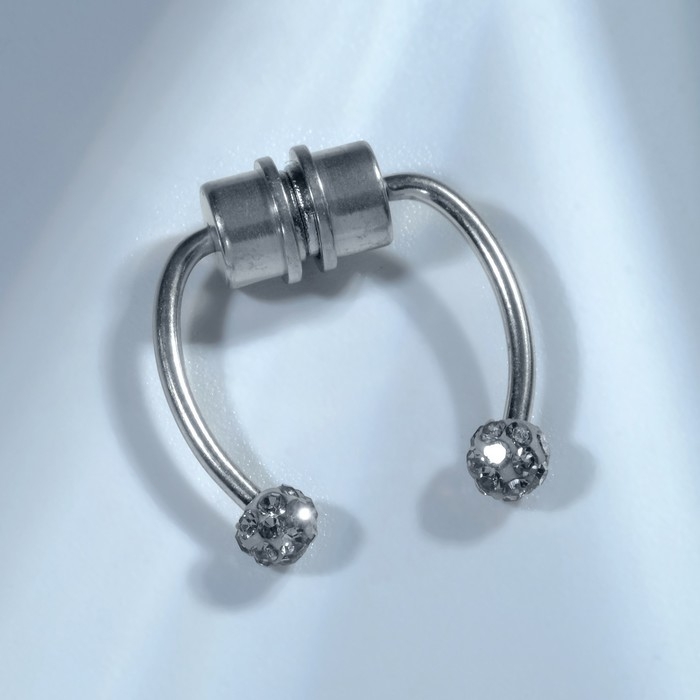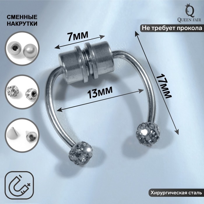 Пирсинг в нос (фейк для септума) со сменными насадками, на магните, L=17 мм, белый в серебре