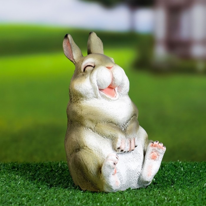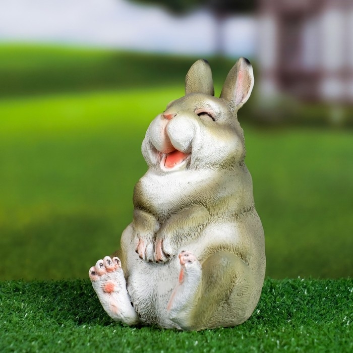 Садовая фигура "Зайка-хохотун маленький" серый, 9x11x16см