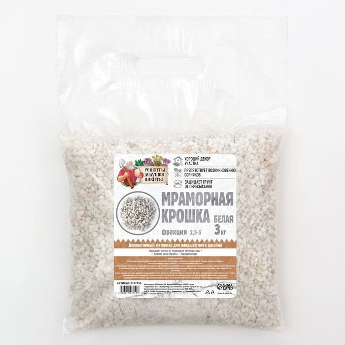 Мраморная крошка "Рецепты Дедушки Никиты", отборная, белая, фр 2,5-5 мм , 3 кг
