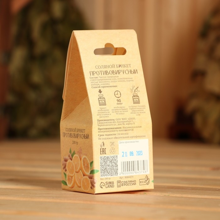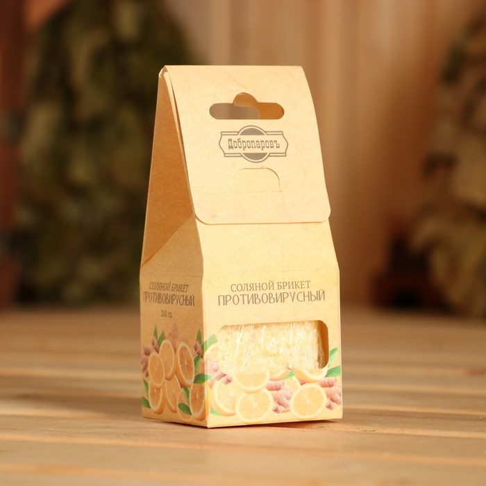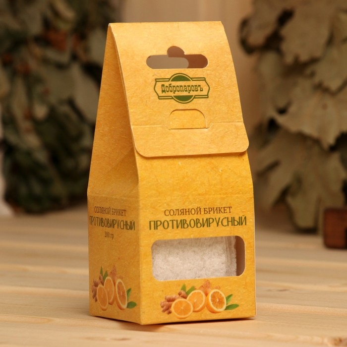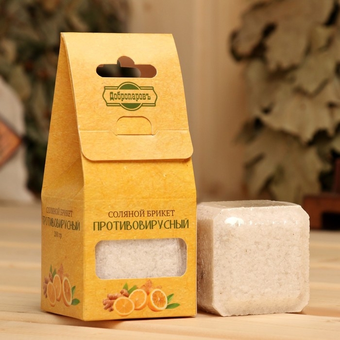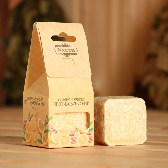 Соляной брикет куб "Противовирусный" 200 г "Добропаровъ" лимон, имбирь