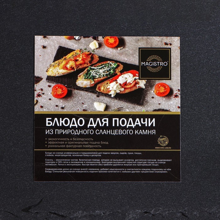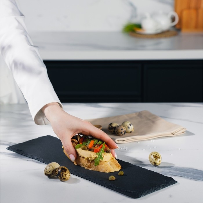 - Высокое качество материала: доска выполнена из натурального сланца, что обеспечивает её прочность и долговечность.
