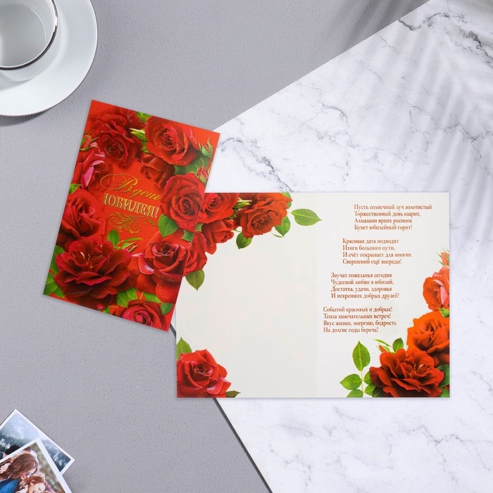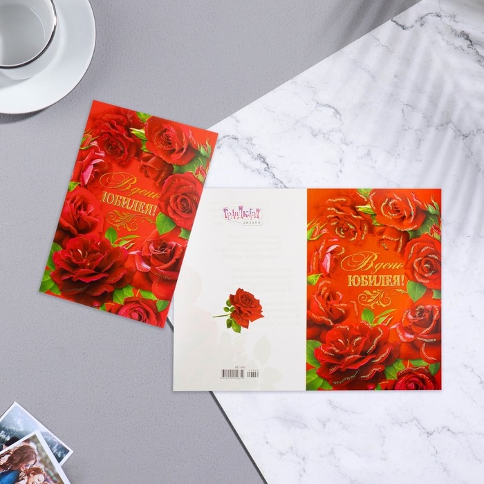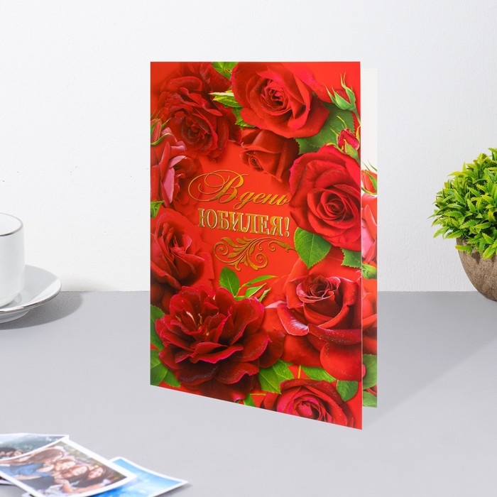 Открытка "В День Юбилея!" розы, глиттер, 29,7х19,5см