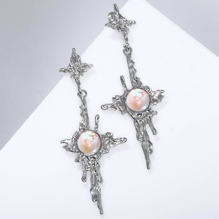 Серьги под натуральный камень «Звёзды» четырёхконечные с камнем, цвет голубой в серебре