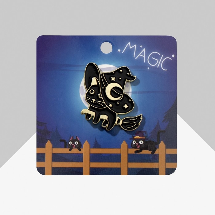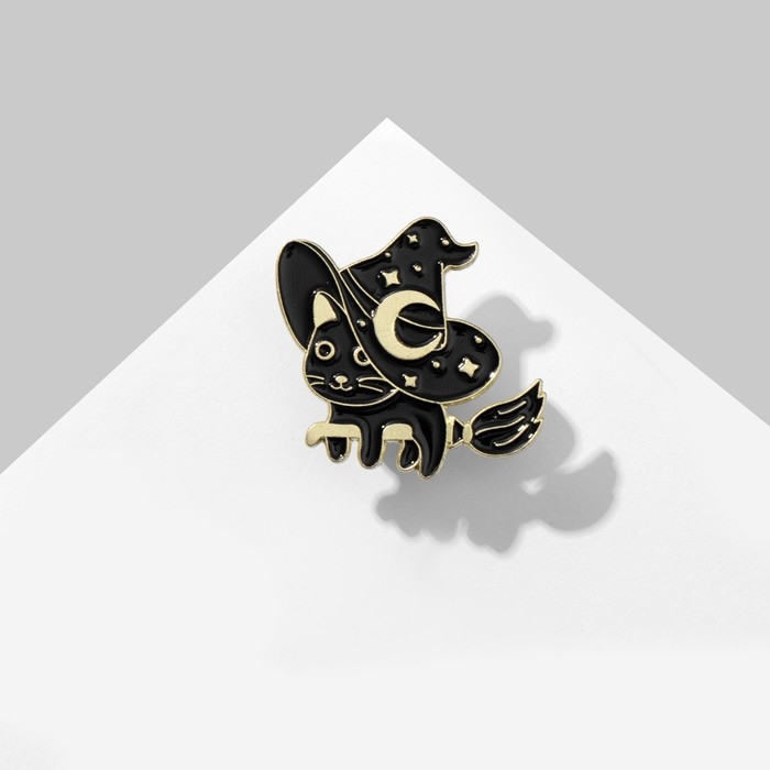 Значок «Кошка» ведьма на метле, цвет чёрный в золоте