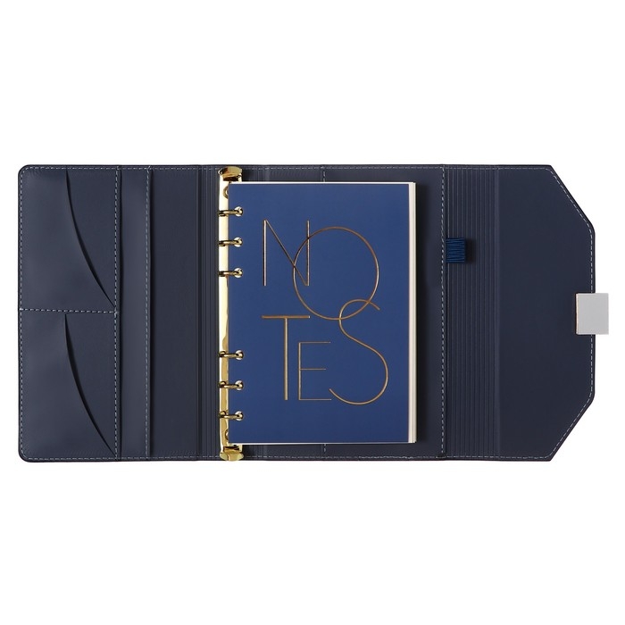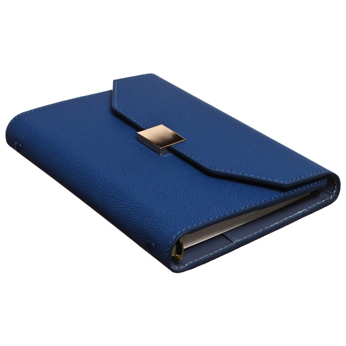 Органайзер на кольцах А6+, 80 листов, кожзам, c клапаном, линия, с ручкой, в подарочной коробке, синий