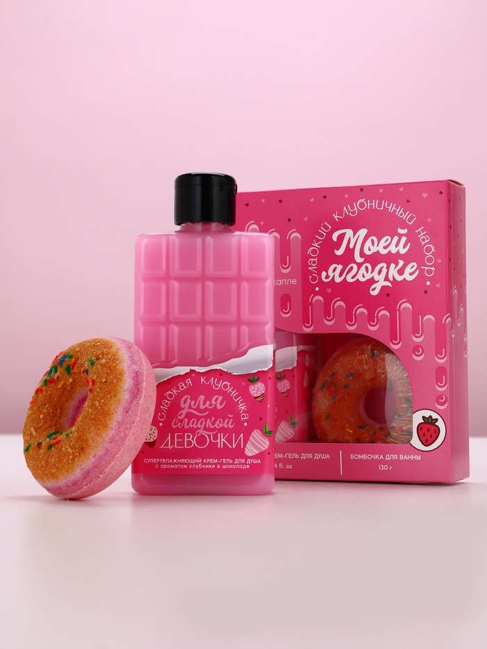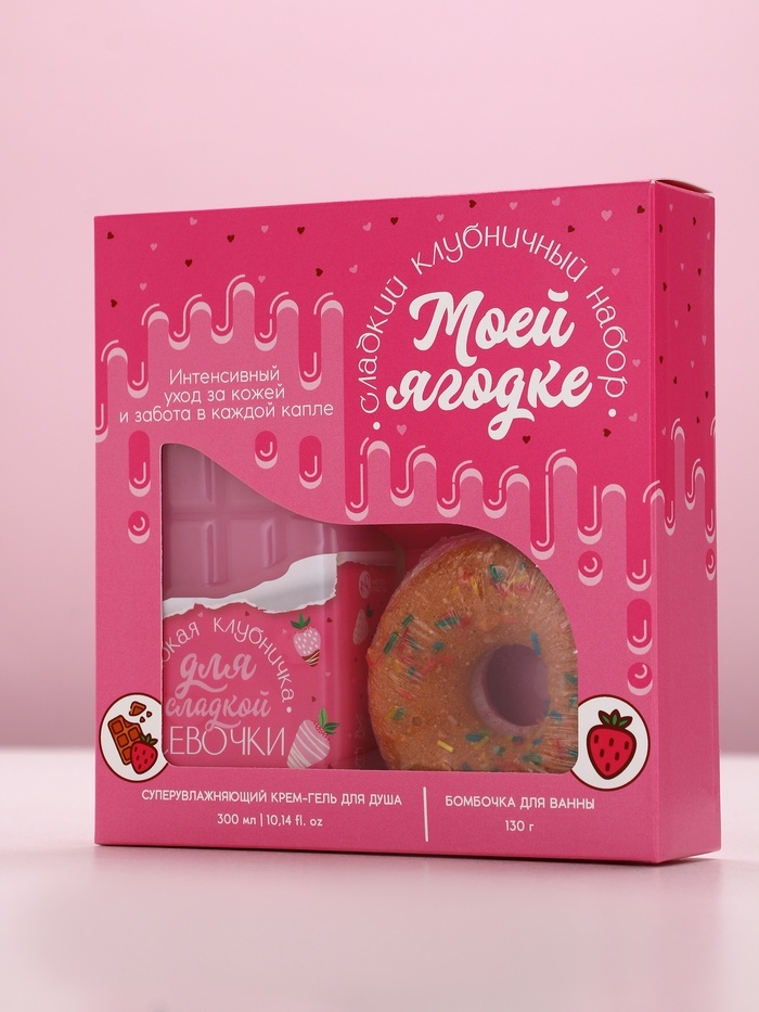 Набор "Моей ягодке", гель для душа во флаконе шоколад и поник для ванны