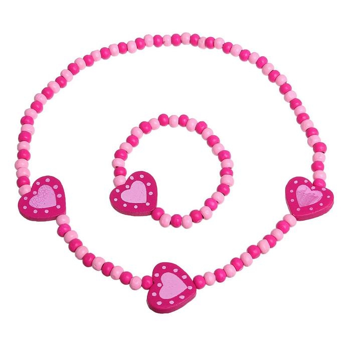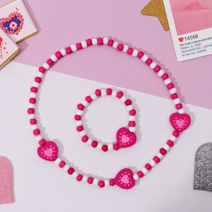 Набор детский «Выбражулька» 2 предмета: колье, браслет, сердечки полоска, цвет бело-розовый