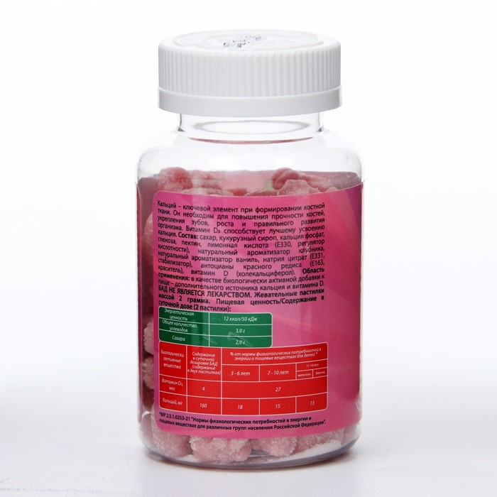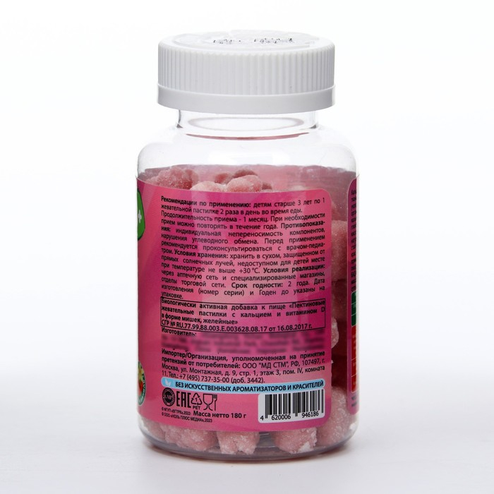 Пектиновые жевательные пастилки с кальцием и витамином D в форме мишек, желейные.