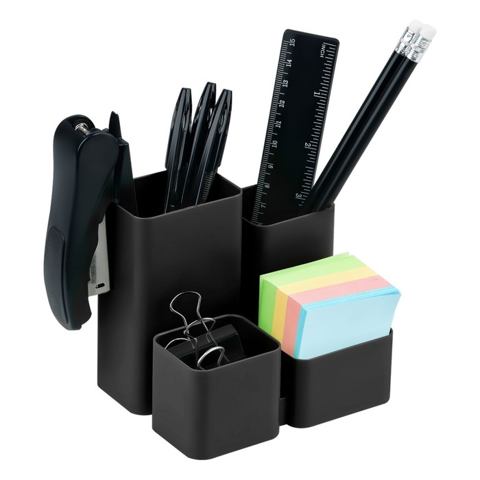 - 4 отделения позволяют хранить необходимые канцелярские принадлежности.