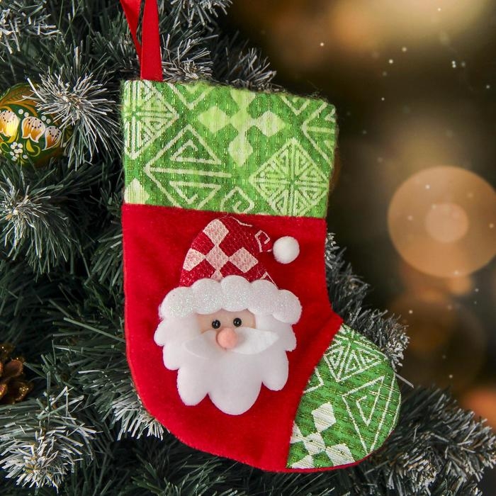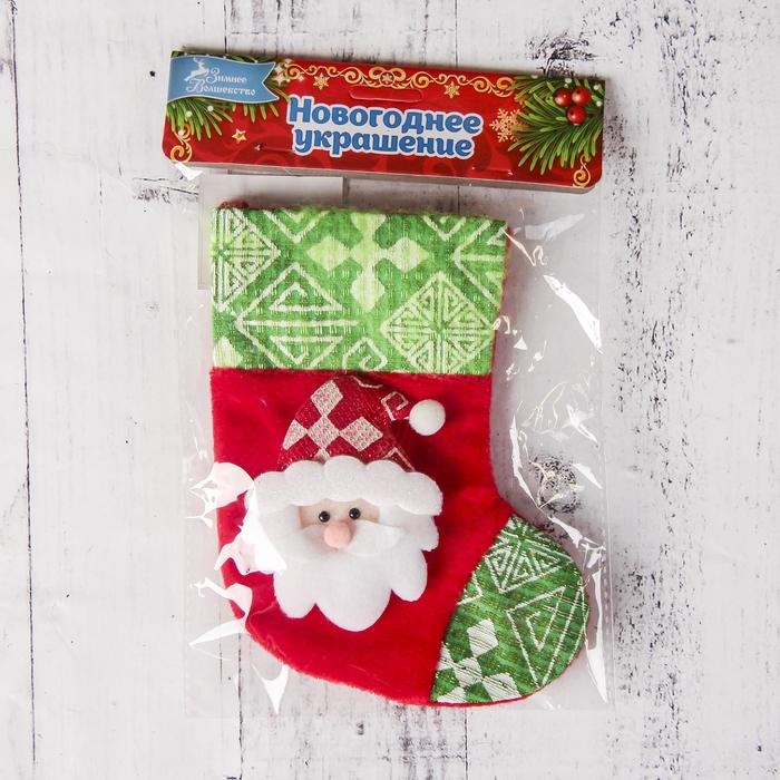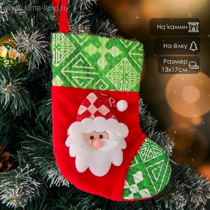 Носок для подарков "Ночь перед Рождеством" 13*17,5 см, дед мороз, красно-зелёный