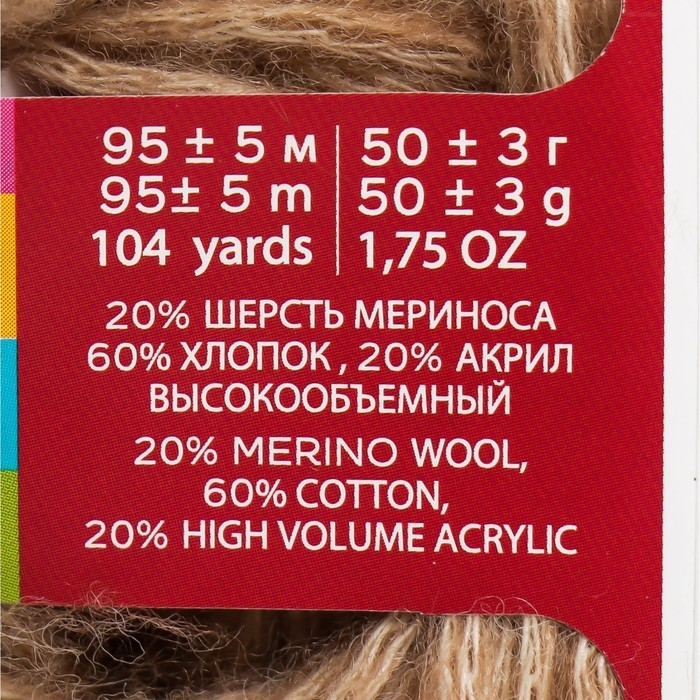 Пряжа для вязания спицами, крючком «Троицкая. Фиджи», 20% мериносовая шерсть, 60% хлопок, 20% акрил, 95 м/50 г, (579 св. кофейный)