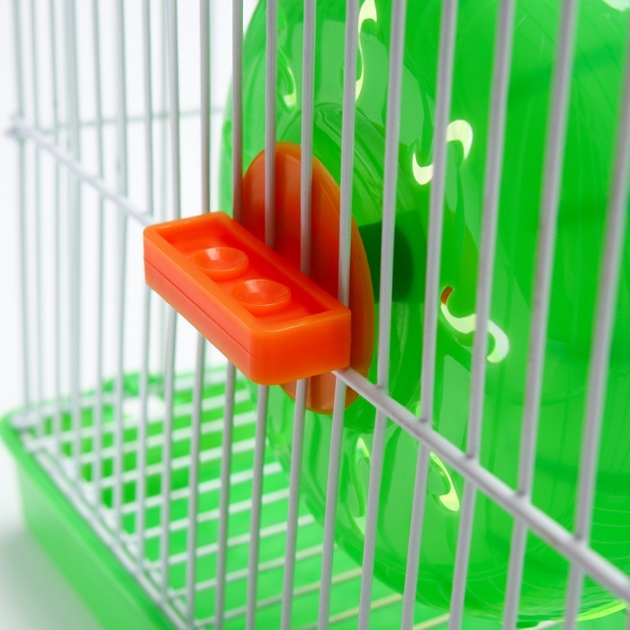 Внутри клетки есть беговое колесо, которое поможет вашему грызуну поддерживать физическую форму и заняться любимым делом.