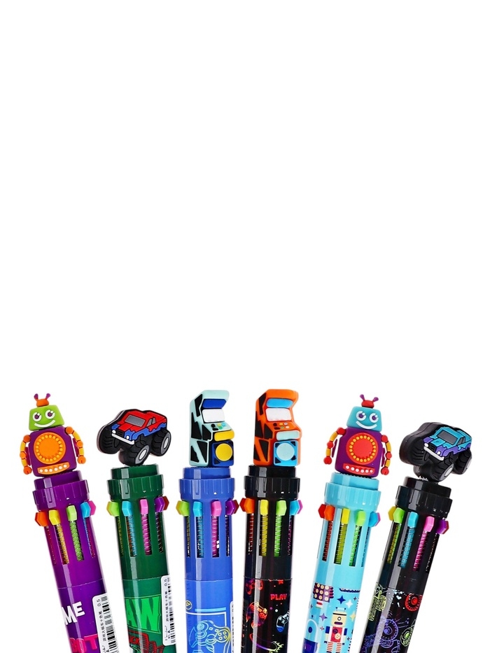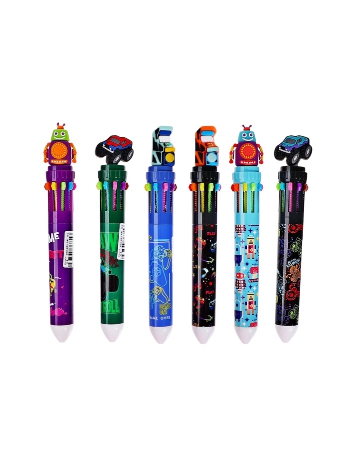 Ручка шариковая автоматическая, 10-ти цветная, штрихкод на штуке, МИКС Робот/Машина