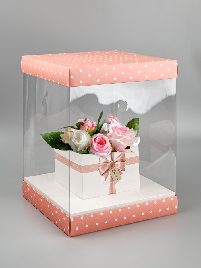 Коробка для цветов с вазой и PVC окнами складная «Для тебя», 23 х 30 х 23 см