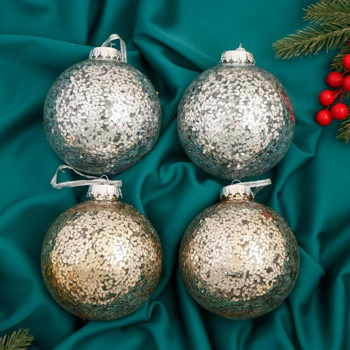 Набор шаров пластик d-10 см, 4 шт "Праздничный настроение блеск" серебро золото