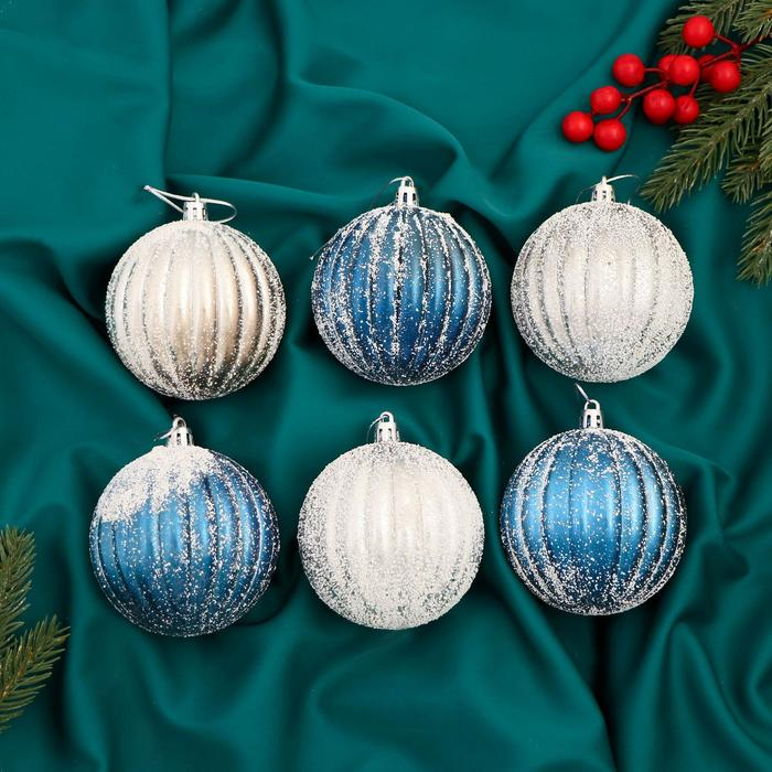 Набор шаров пластик d-8 см, 6 шт "Роксолана" бело-синий