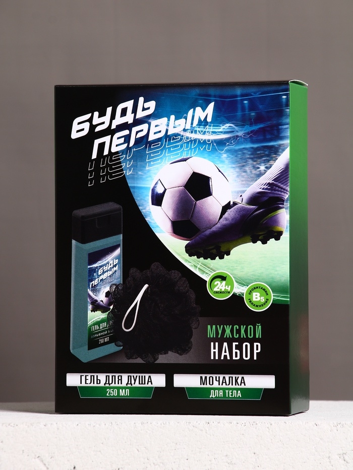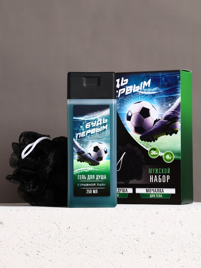 Набор "Будь первым", гель для душа 250 мл и мочалка для тела