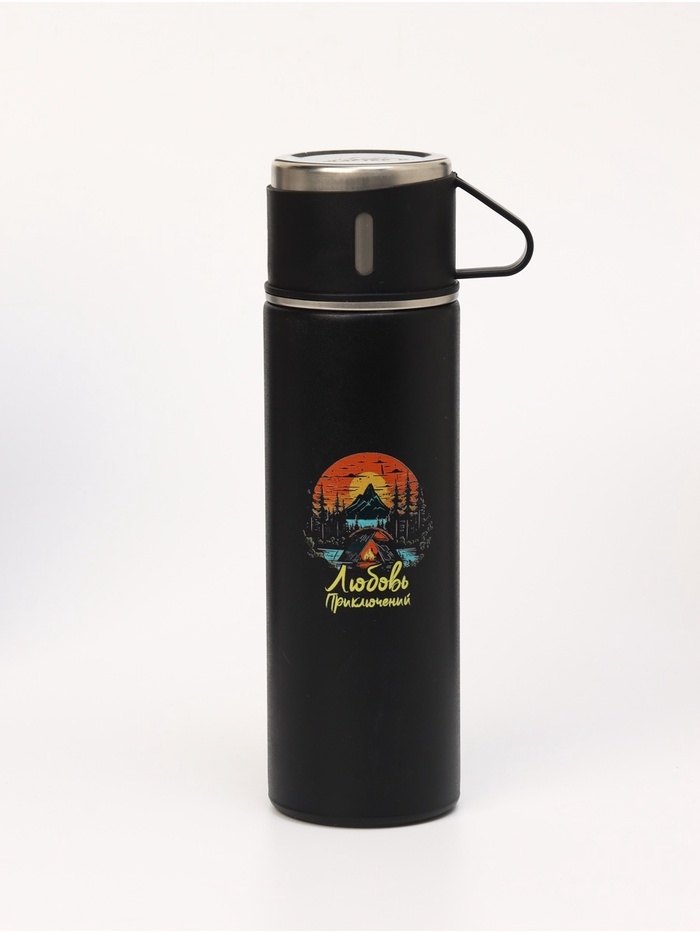 Термос "Мастер К. Любовь Приключений", 500 мл, сохраняет тепло 8 ч, с кружкой, черный