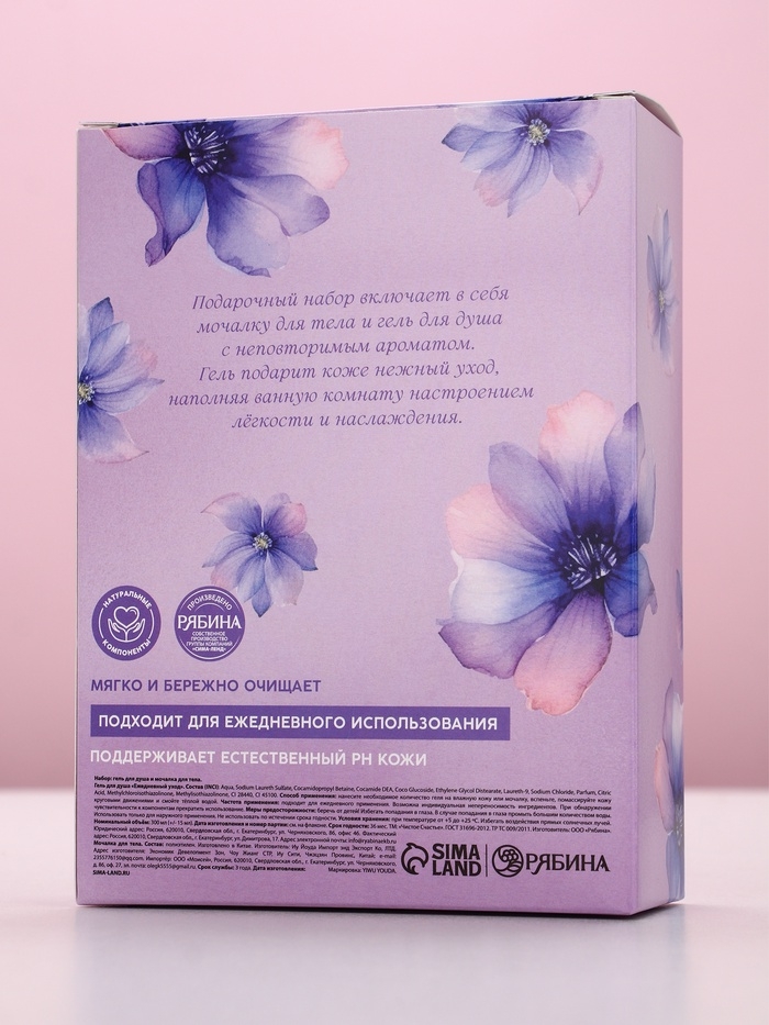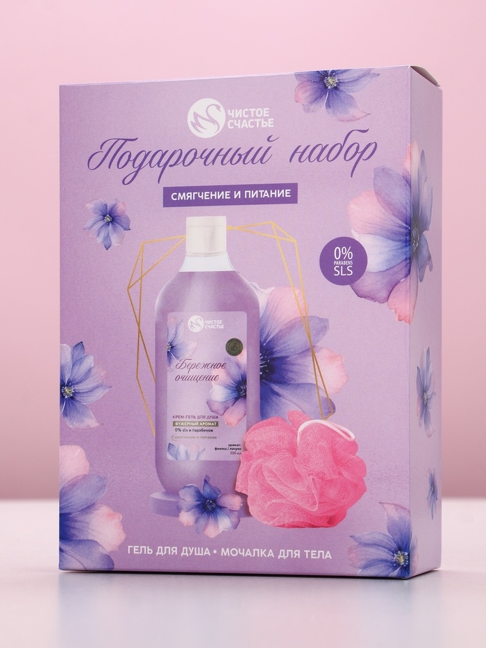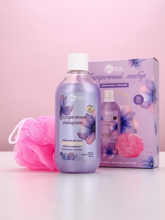 Подарочный набор "Смягчение и питание", крем-гель для душа 300 мл и мочалка для тела
