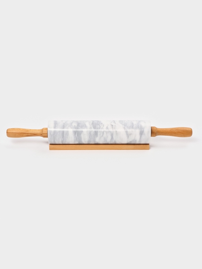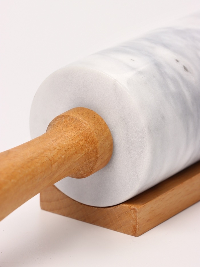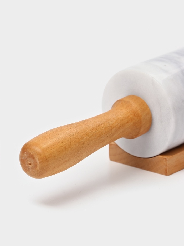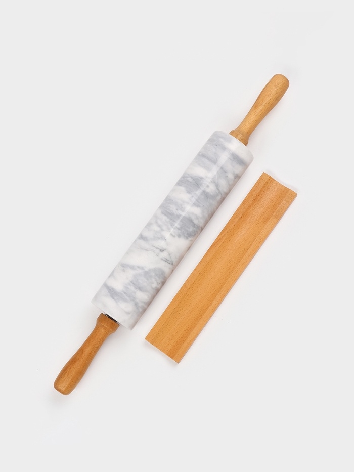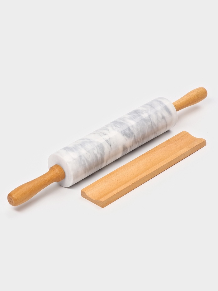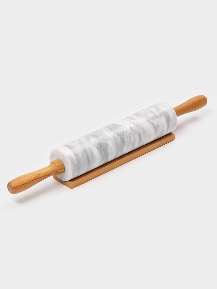 Скалка из мрамора 46х6 см, цвет белый, ручки из бука