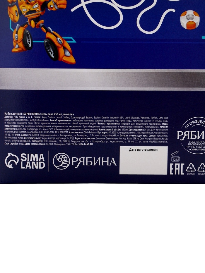 Набор детский "SUPER ROBOT", гель-пена 250 мл, мочалка 25 гр