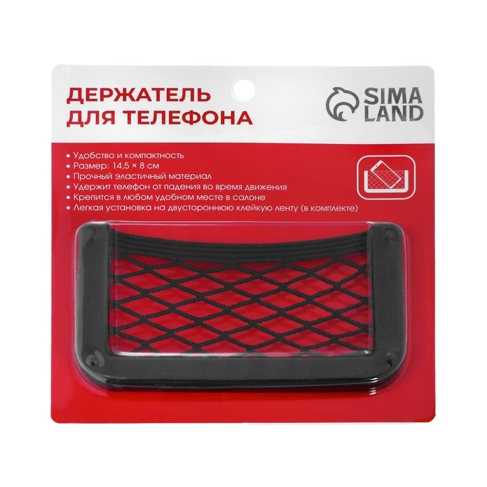 Карман-сетка под телефон TORSO, на клейкой ленте, 14,5 х 8 см, чёрный. Используйте держатель для удобного размещения в салоне автомобиля различных предметов и их защиты от падения во время движения. Вы без труда сможете установить данное изделие в любом подходящем для него месте.