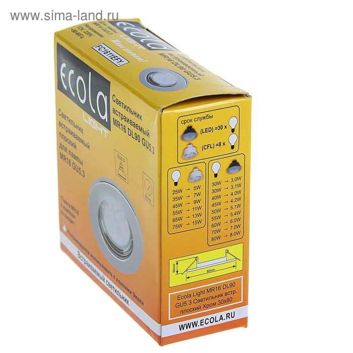 Светильник встраиваемый Ecola, DL90, MR16, GU5.3, 30 x 80 мм, плоский, цвет хром