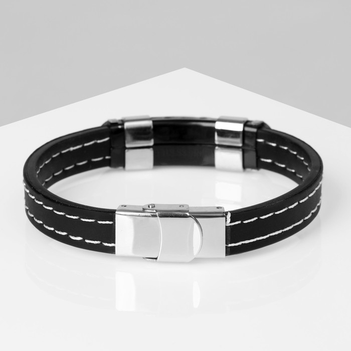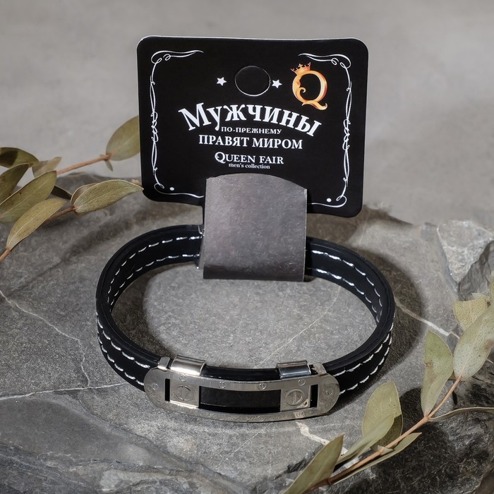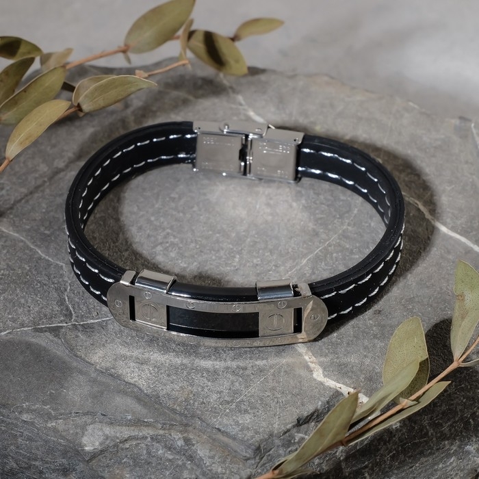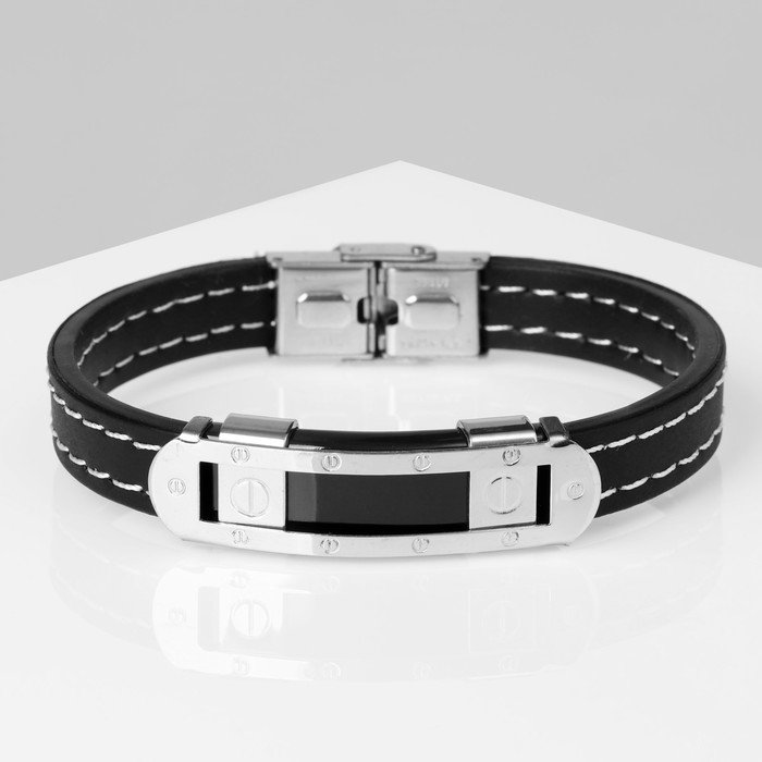 Браслет унисекс «Мощь» прямоугольная пряжка, цвет чёрный с серебром, 22 см