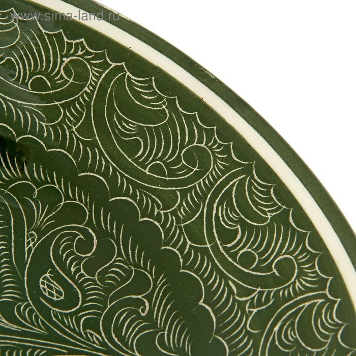 Тарелка Риштанская Керамика "Узоры", зелёная, глубокая, 20 см
