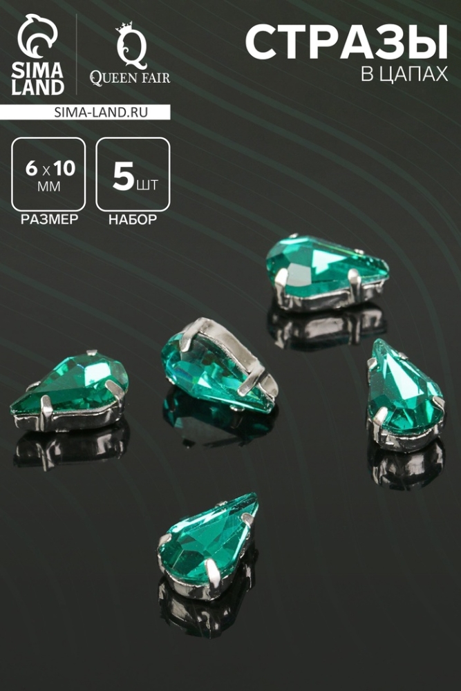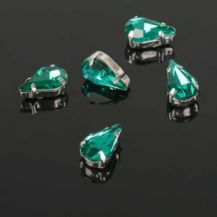 Стразы в цапах (набор 5 шт.), 6×10 мм, цвет изумрудный в серебре