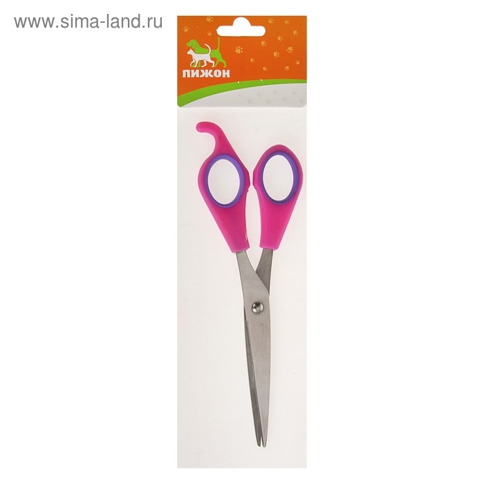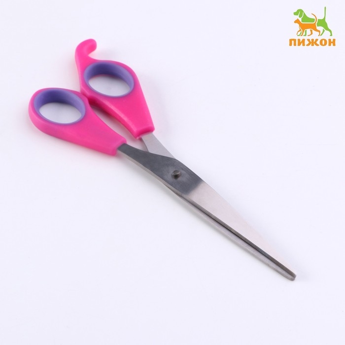 Ножницы для стрижки животных, прямые, с упором для пальца, прорезиненные ручки, для правшей. Ножницы для стрижки животных представляют собой специальный инструмент, который существенно облегчает работу грумера. Ножницы имеют удобный упор для пальцев, что облегчает нагрузку на кисть. Изделие выполнено из качественного металла, не подверженного коррозии.