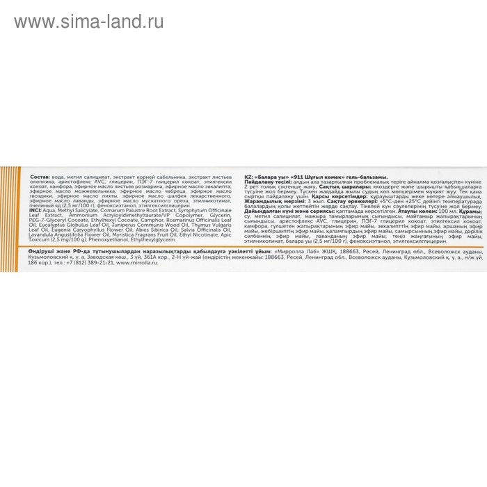 Гель-бальзам для суставов 911 «Пчелиный яд», 100 мл