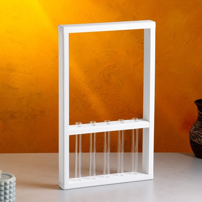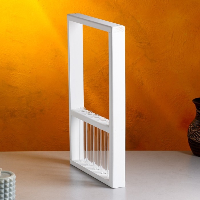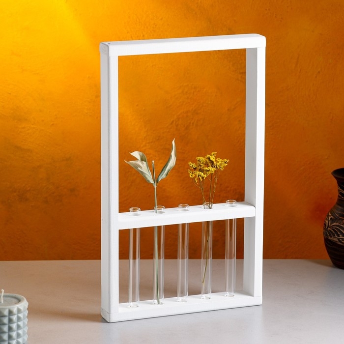 Кашпо деревянное 28×4.5×40 см с 5 колбами "Рамка Экстра", белый Дарим Красиво
